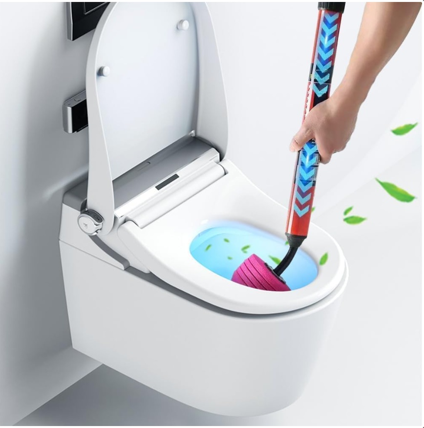 The heavy duty toilet plunger has a maximum pressure of 120psi, which helps to blow the blockage open in seconds. Lighter and more effective than toilet screws. (Make sure the blowing action is quick and continuous)