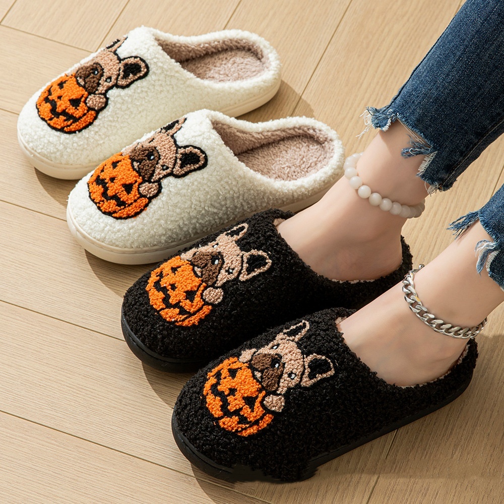 Cute Halloween Slippers: These Halloween house slippers come in various designs like cute dog and pumpkins, perfect for the spooky season. Made from soft materials, they ensure comfort and warmth. Slip them on to add joy to your Halloween while staying cozy.
