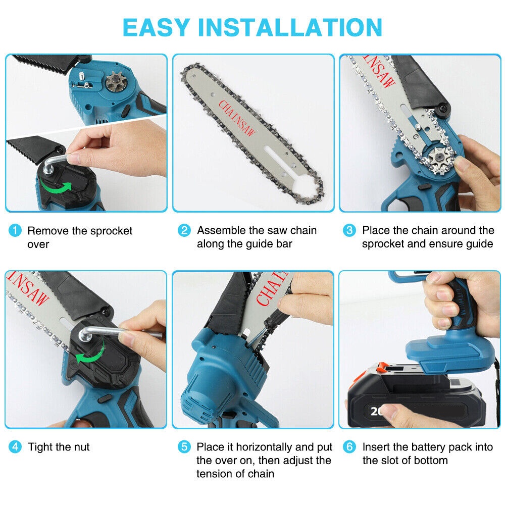 Die Mini-Kettensäge wiegt nur 2,8 Pfund und kann mit einer Hand bedient werden. Frauen können es leicht kontrollieren und über einen langen Zeitraum verwenden, ohne sich müde zu fühlen.