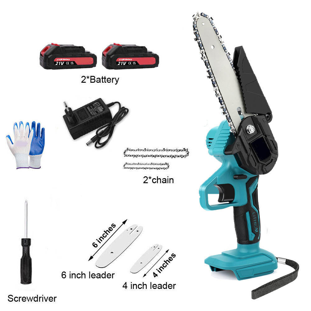 21V Mini Chain Saw 4-6 Inch Wireless Single Hand Saw Wood Cutter 2 Batteries
