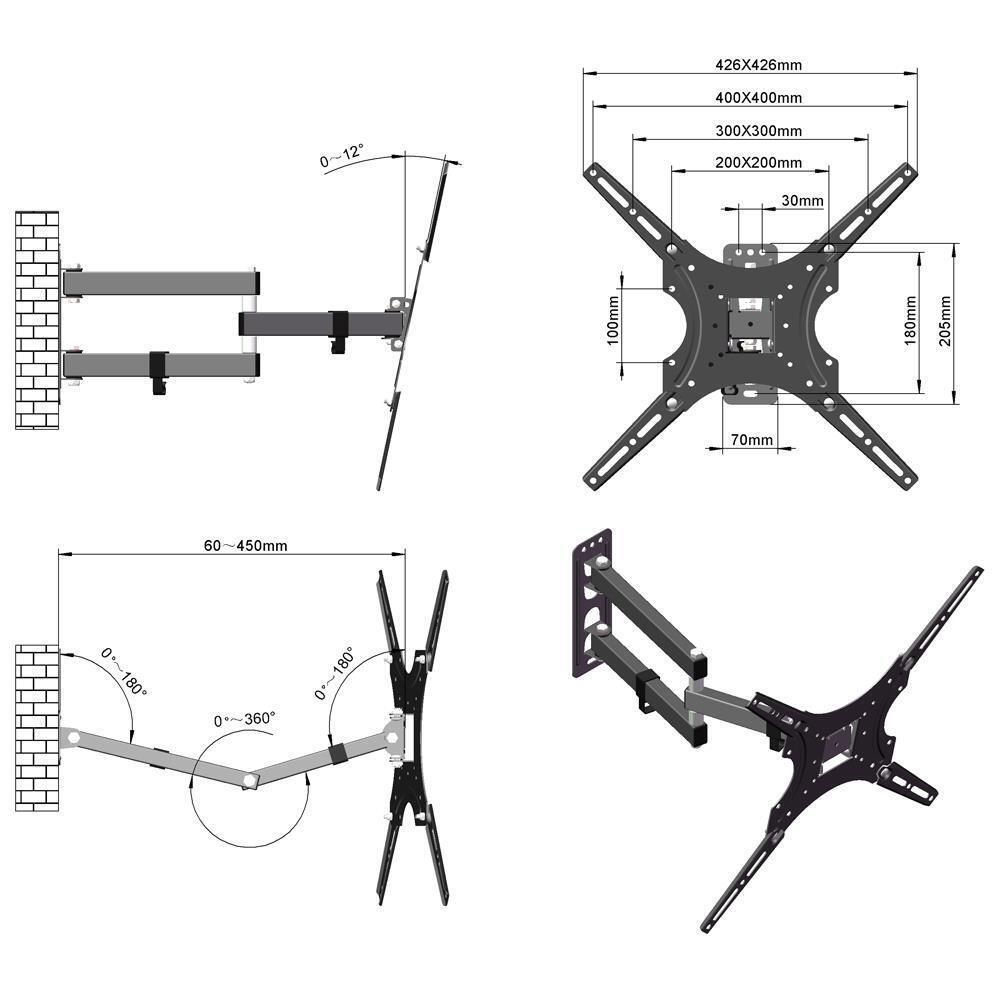 26-55″ Full Motion TV Wall Mount Rotation 180��Swivel Bracket 26 32 40 42 5″