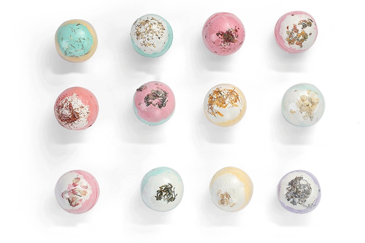 Put the whole essential oil ball into a bathtub filled with water to make the bubble bomb fully dissolve in the water. You can gradually crush the bath ball with your hands. (The soft sea salt during the melting process can also be used for body rubbing and exfoliation),