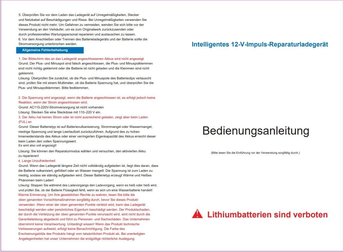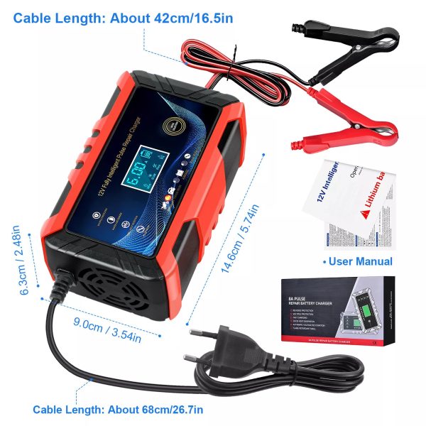 Auto-Batterie-Ladeger��t, auch Batterie-Wartungsger��t, Impuls-Reparatur-Funktion kann helfen, Ihren Verlust Batterie zu reparieren und verl��ngern die Lebensdaeine Batterie reparieren, die schwer besch��digt ist; es kann auch nicht eine Batterie zur��ck zu 100% neu reparieren.