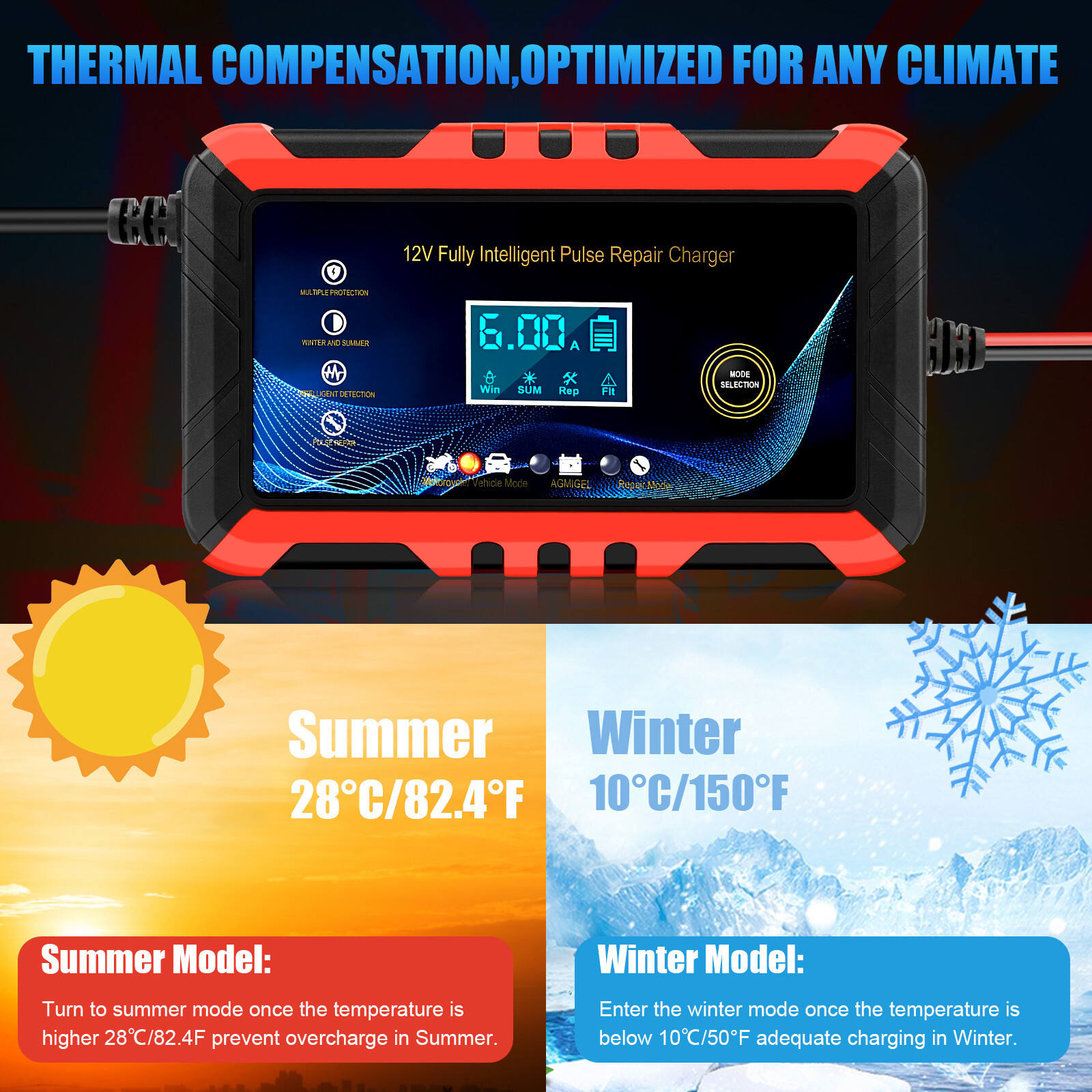 Car Intelligent Battery Charger Pulse Repair Trickle Charger 12V 6A