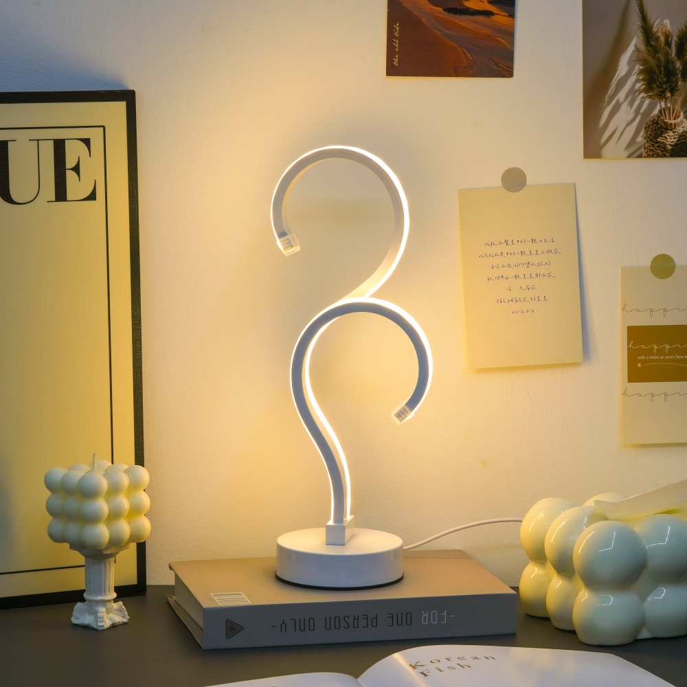 Creative Double Question Mark Elegant White Desktop Lamp, USB Power Supply – Three Color Lighting, Suitable for Bedroom