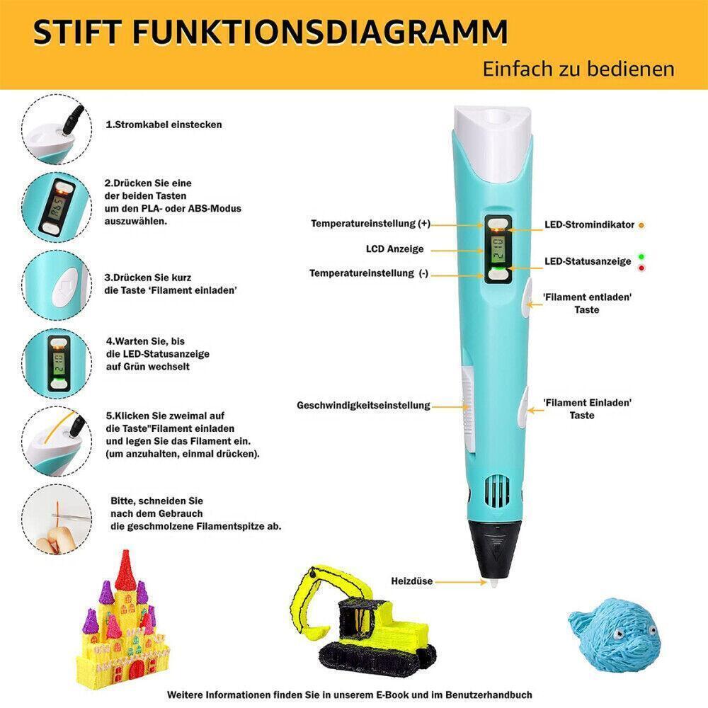 Der 3D-Druckstift ist das perfekte Geburtstags-/Weihnachtsgeschenk für Kinder und Erwachsene, um Kreativität, Konzentration, Feinmotorik und künstlerische Fähigkeiten zu fördern.