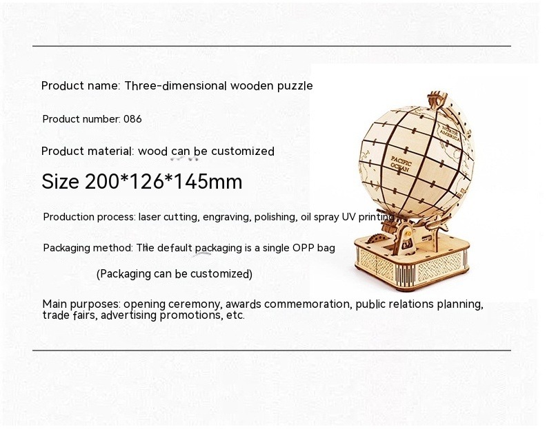 Earth Instrument Puzzle Wooden Assembly Model Handmade Educational Toys World Map Laser Processing