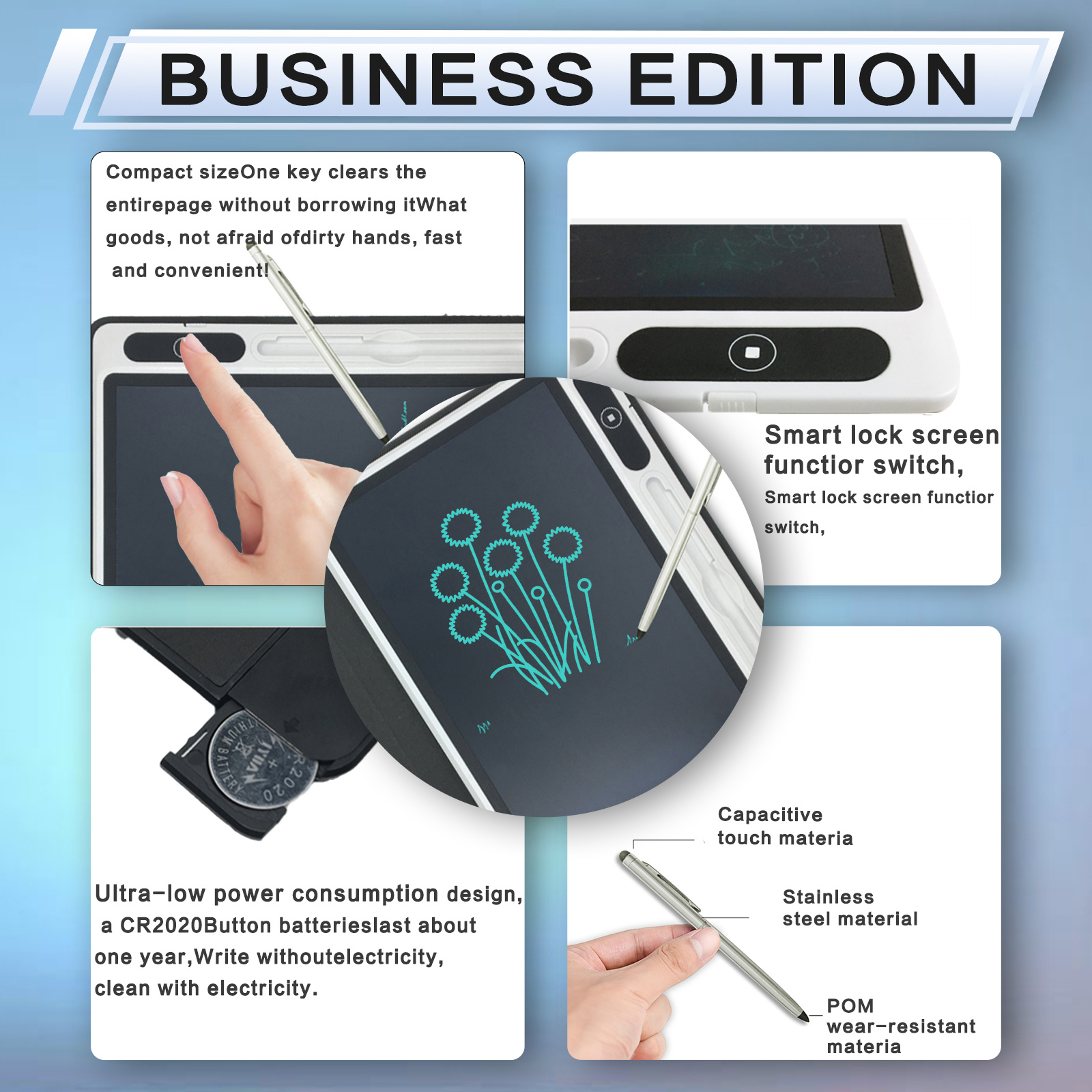 Eye-Friendly Blue-Light Free LCD Writing Tablet, Flip Case Stand Design, One-Clear Erase Portable Paperless Board For Kids Learning & Office Draft