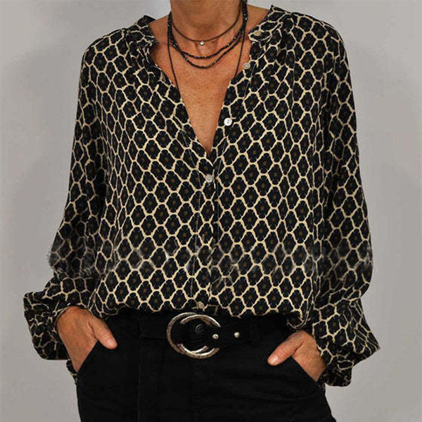 0d752cbf 7673 4db5 acff df8abd65618e.jpgFashion Lozenge Print V-Neck Shirt Casual Loose Long Sleeve Top Women’s Clothing