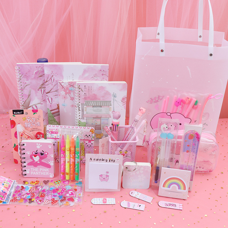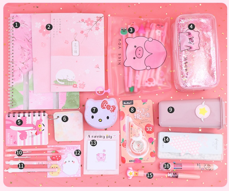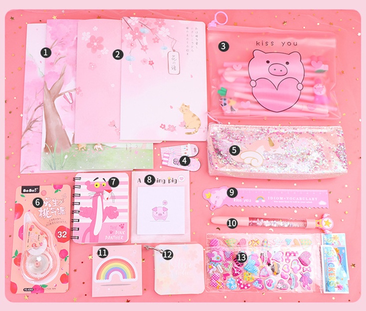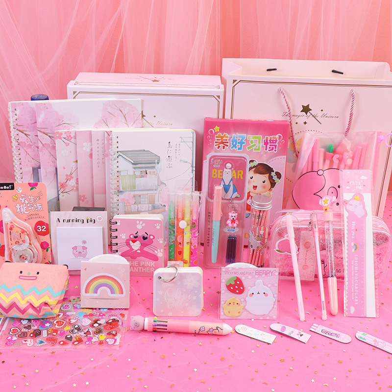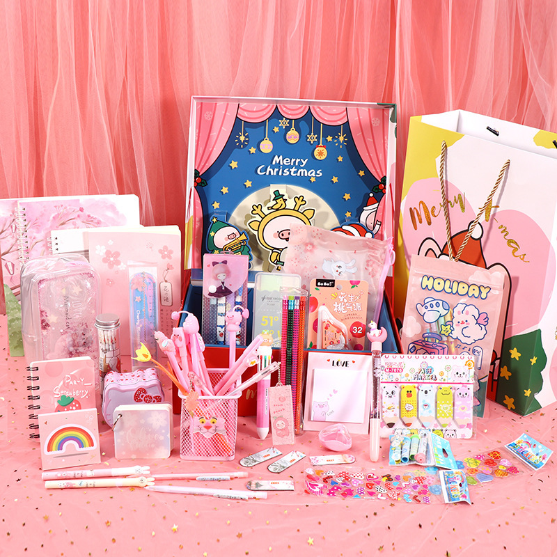Components: pencil case, gel pen, correction tape, cartoon gift box, etc.