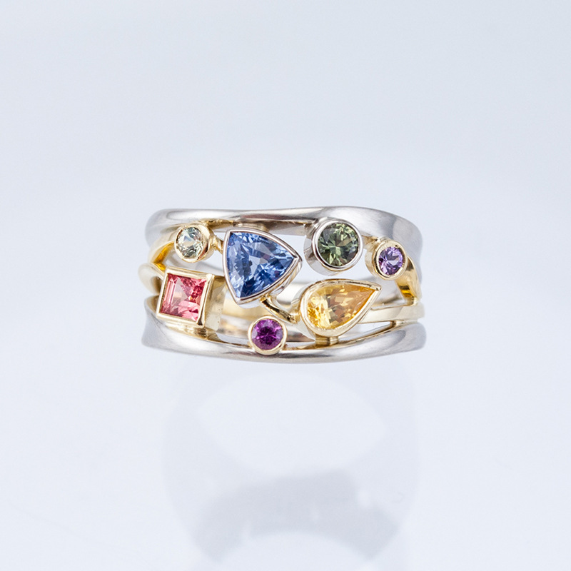 Inlaid Zircon Wavy Lines Exquisite Multicolor Geometric Pattern Women’s Ring