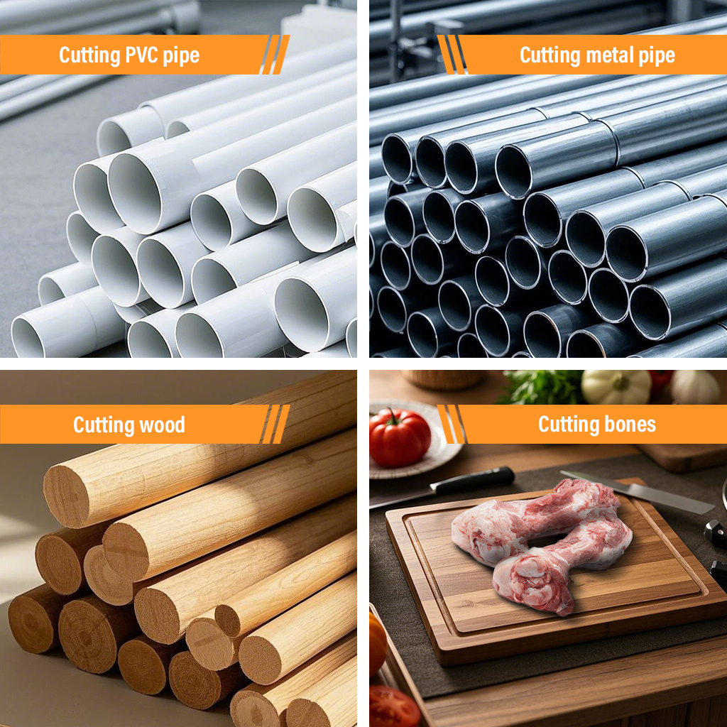 Home maintenance: cutting metal water pipes, repairing wooden furniture, cutting PVC pipes/plastic boards, etc.