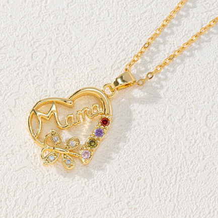 The hollow heart shape with a multicolor rhinestone design looks eye-catching.