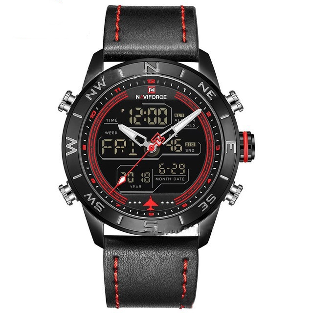 NAVIFORCE 9144 Fashion Gold Men Sport Watches Mens LED Analog Digital Watch Army Military Leather Quartz Watch Relogio Masculino