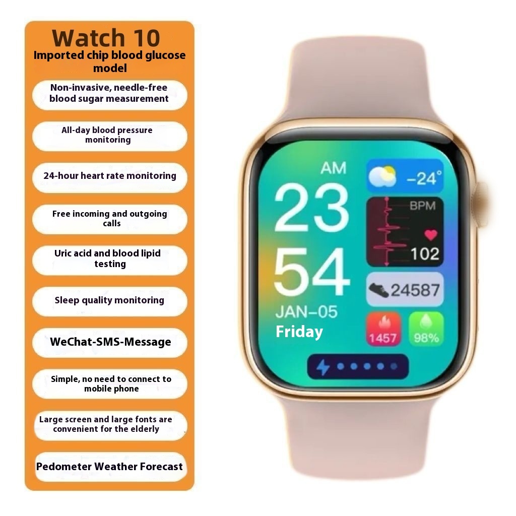 Needle-free Blood Sugar Testing Blood Pressure Smart Watch Uric Acid Heart Rate Bluetooth Calling