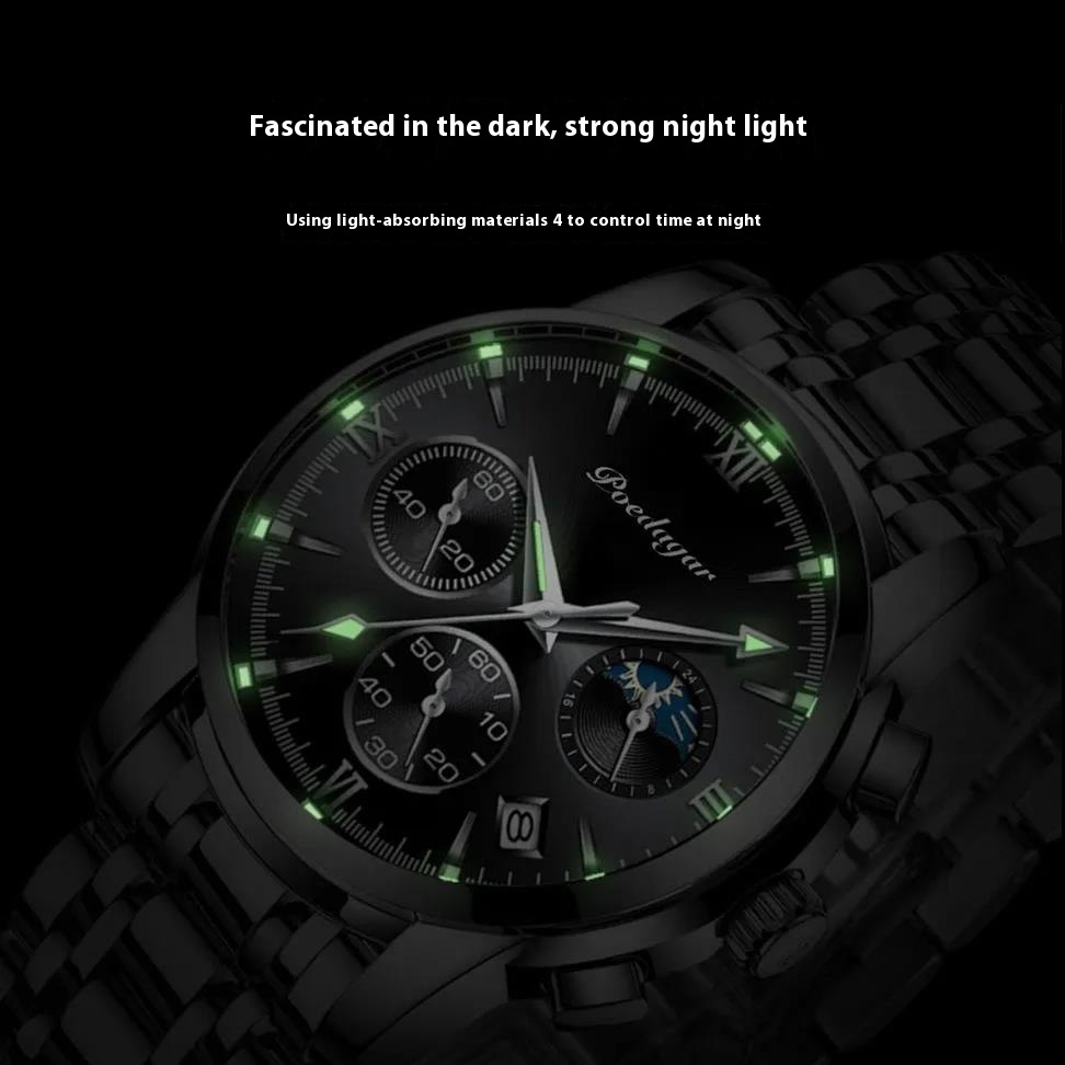 Color: natural black surface steel strip (three-pin calendar), natural blue surface steel strip (three-pin calendar), black and golden surface steel strip (three-pin calendar), Golden white surface steel strip (three-pin calendar), black cover black surface steel belt (three-pin calendar), natural black surface belt style (three-pin calendar), natural blue surface belt style (three-pin calendar), black and golden surface belt style (three-pin calendar), gold white surface belt style (three-pin calendar), black cover black surface belt style (three-pin calendar)
