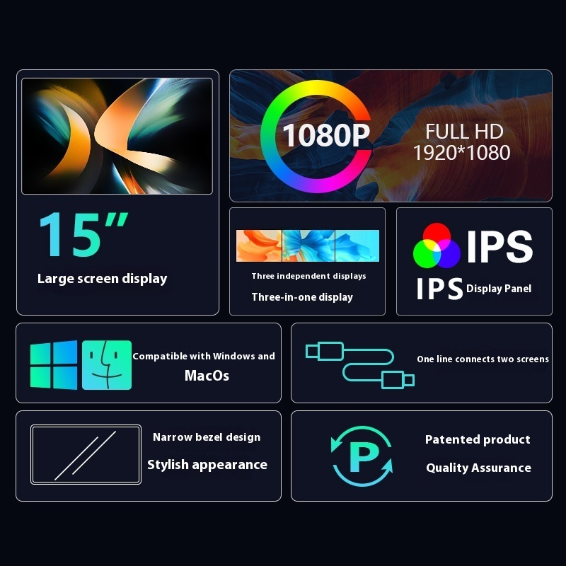 USB-C to USB-C cables * 2pcs USB-A to USB-C cables * 2pcs MINI HDMI cable * 2pcs Magic tape * 1pcs Buckle protective rubber sleeve * 6pcs Handbags * 1pcs Instructions * 1pcs