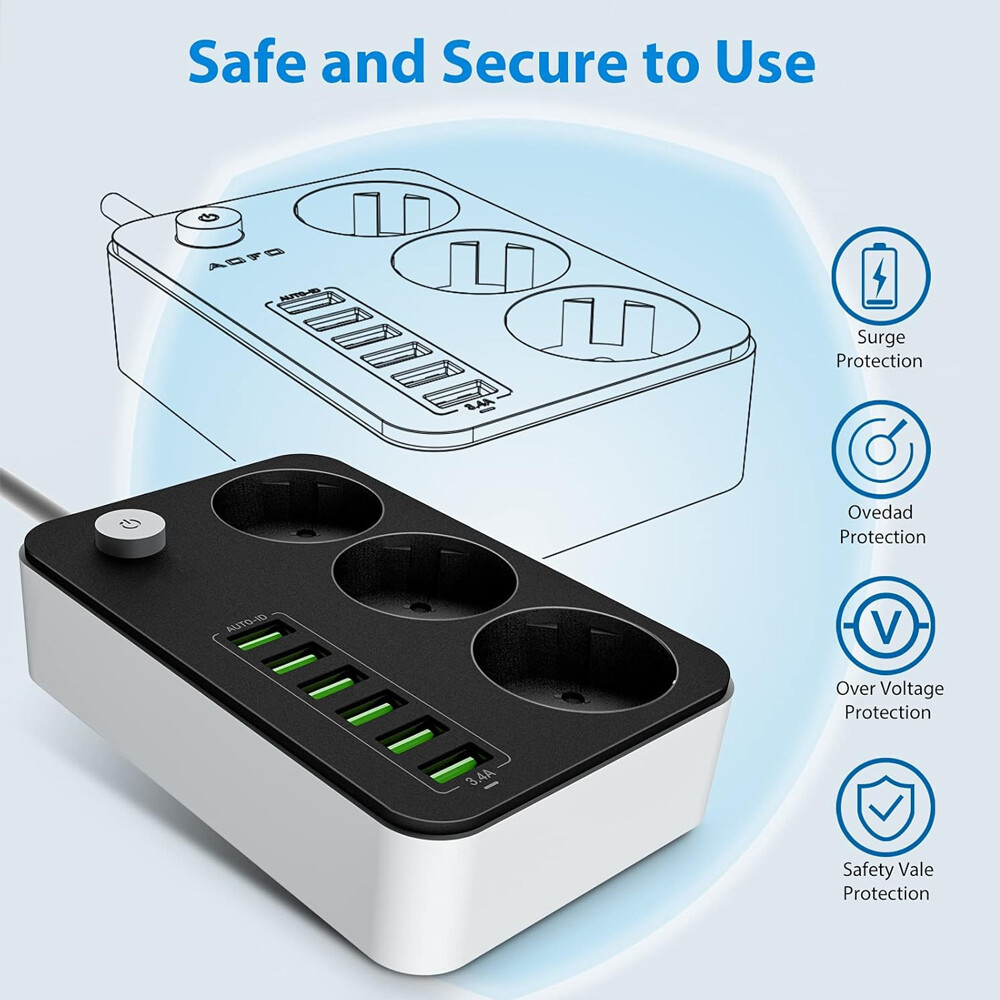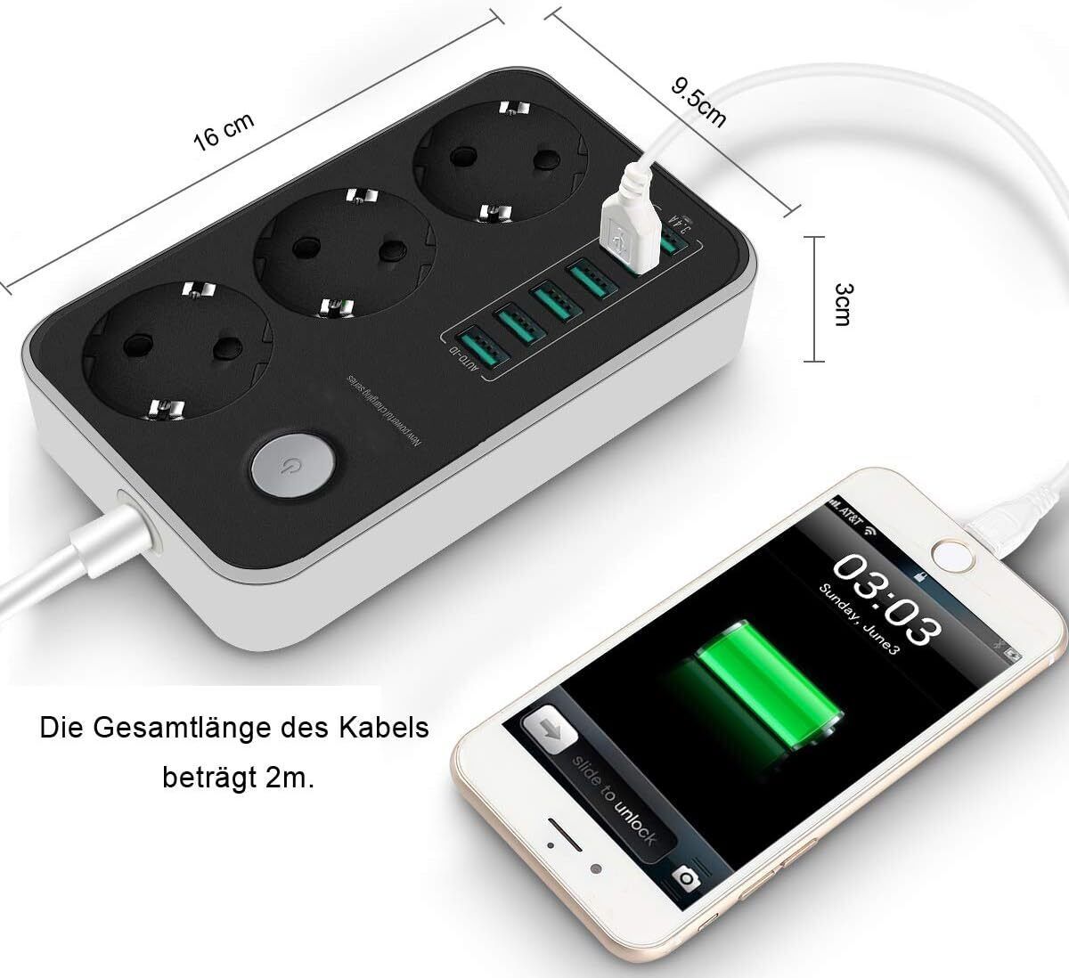 ������1.6M Netzkabel, Versenkter An-/Aus-Schalter, Robustes Geh��use������ Dank des 2-m-Kabels k��nnen Sie den Steckdosenleiste ��berspannungsschutz von unauff��llig platzieren und haben trotzdem viel Platz zum Anschluss Ihrer Ger��te. Das stabile Geh��use gew��hrleistet einen optimalen Betrieb.Der gro��e An-/Aus-Schalter l��sst sich bequem einschalten.Das Geh��use des ��berspannungsschutzes ist sehr robust und bietet Schutz vor osenleiste ��berspannungsschutz integrierten, Metalloxid-Varistoren (MOVs) nehmen ��bersch��ssige Energie auf und setzen Sie als W��rme frei, sodass Ihre Ger��te keine elektrischen Sch��den erleiden und ihre Lebensdauer erh��ht wird..