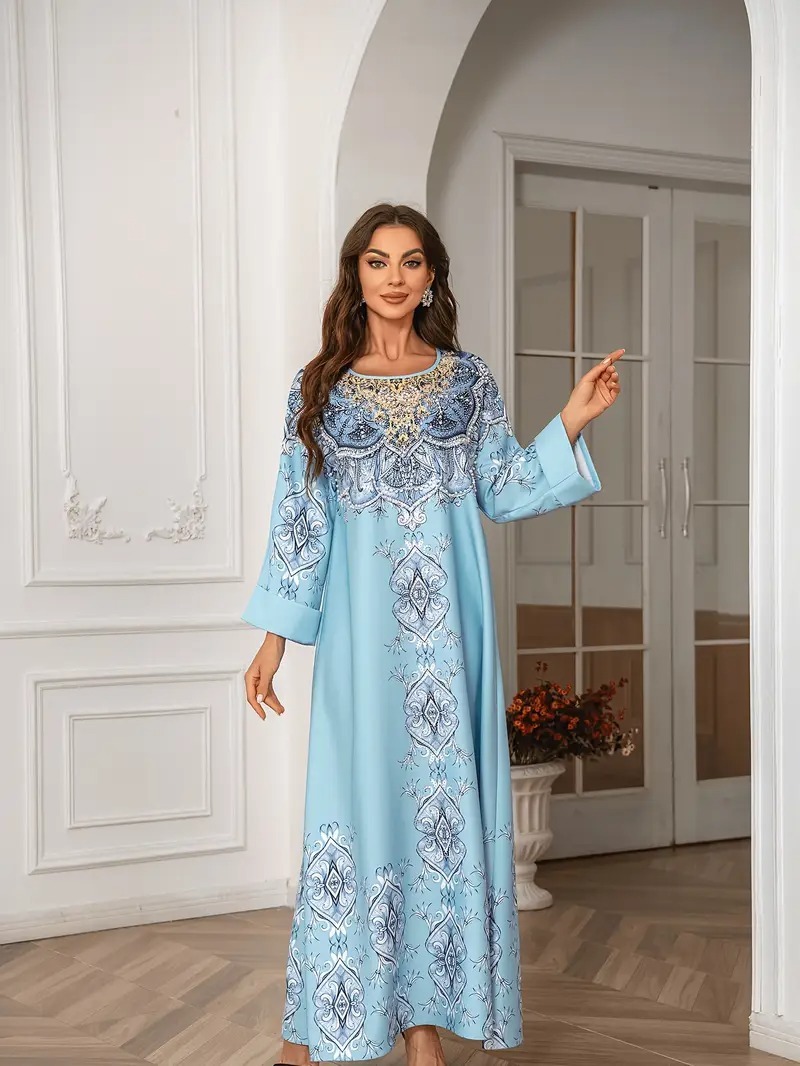 56f315ba a951 4524 9be7 ea25b0129c51.jpgPrinted Lace Detail Abaya Long Sleeved Extra Long Dress