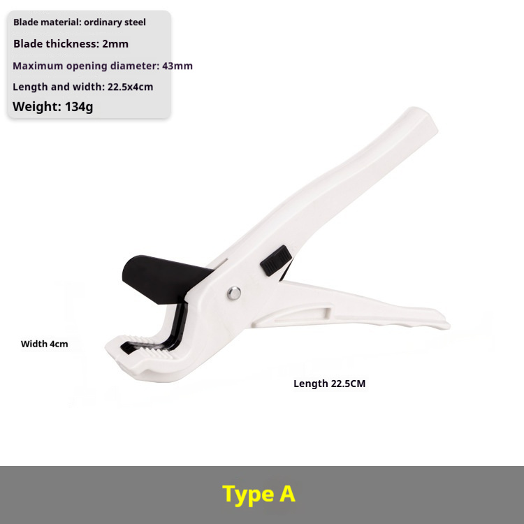 Model: Pu steel (16-32 tube) type A, Pu steel (16-32 tube) type B, Pu steel (16-32 tube) type C, imported manganese steel (16-40 tube) type D, alloy steel (16-40 tube) E Type, alloy steel (16-50 tube) F type, alloy steel (16-63 tube) G type, alloy steel (16-63 tube) big scissors H type, imported manganese steel (16-75 tube) big scissors I type