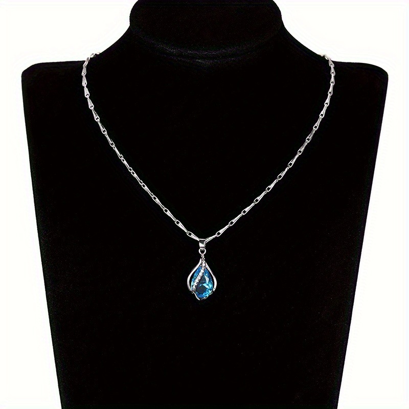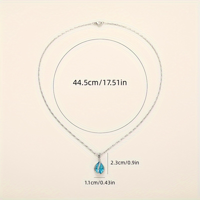 Sea Blue Heart Water Drop Zircon Pendant Clavicle ChainAvailability: In stock (can be backordered)