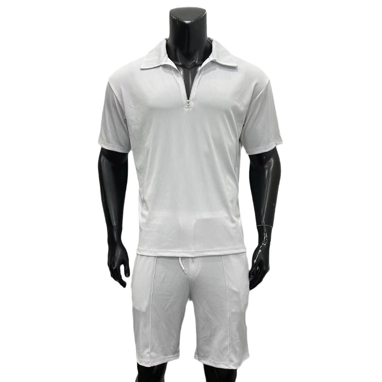 cb8b8f95 778f 4ab7 b6bc b26a5771fe65.jpgSummer Fashion Mens Clothing Men’s Suits New Zipper Polo Casual Short Sleeve Drawstring Shorts Men’s Set