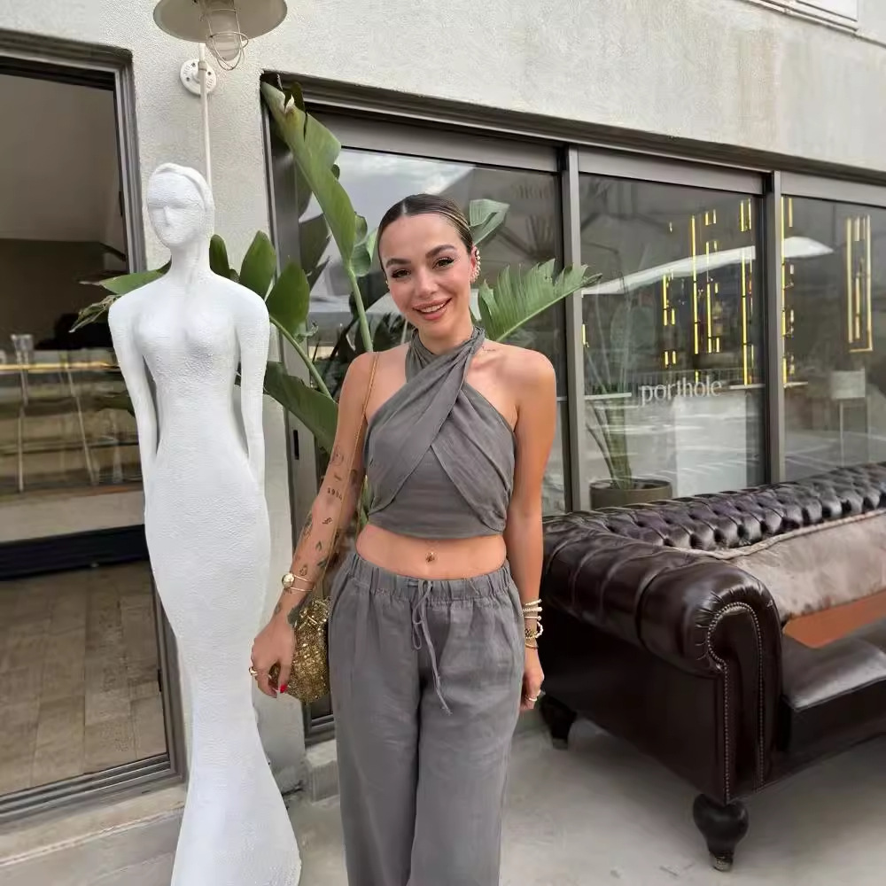 Color: white top, khaki top, orange top, gray top, white pants, khaki pants, orange pants, gray trousers, dark green pants