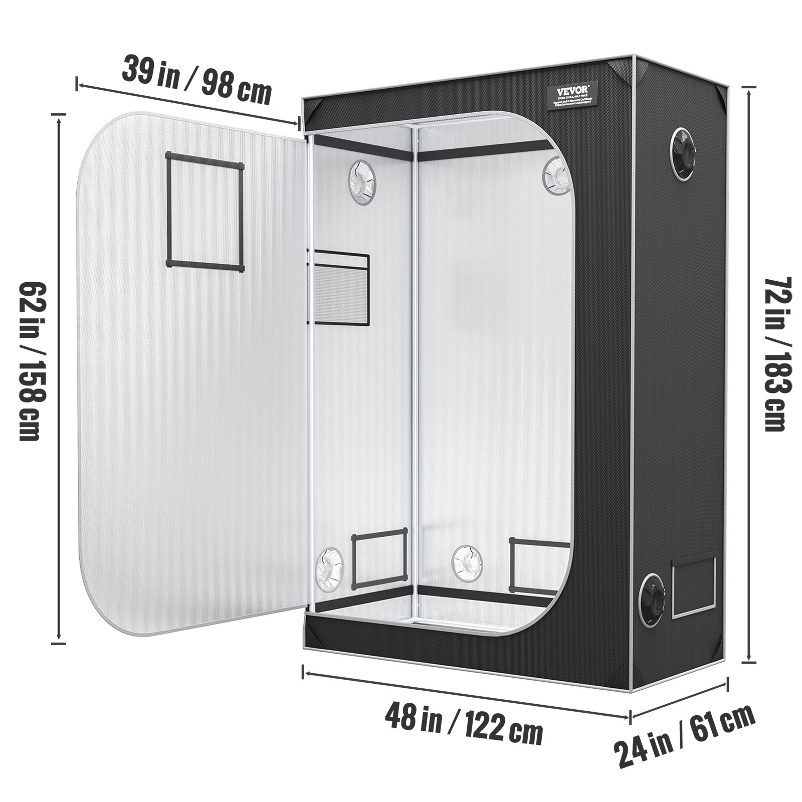 / VEVOR 2×4 Grow Tent, 48” X 24” X 72”, High Reflective 2000D Mylar Hydroponic Growing Tent With Observation Window, Tool Bag And Floor Tray For Indoor Plants Growing