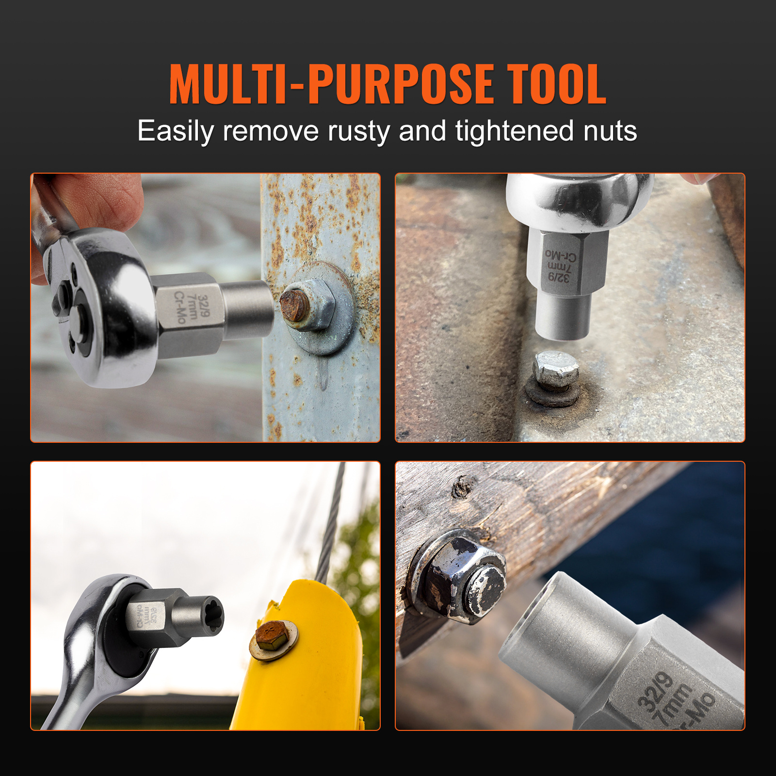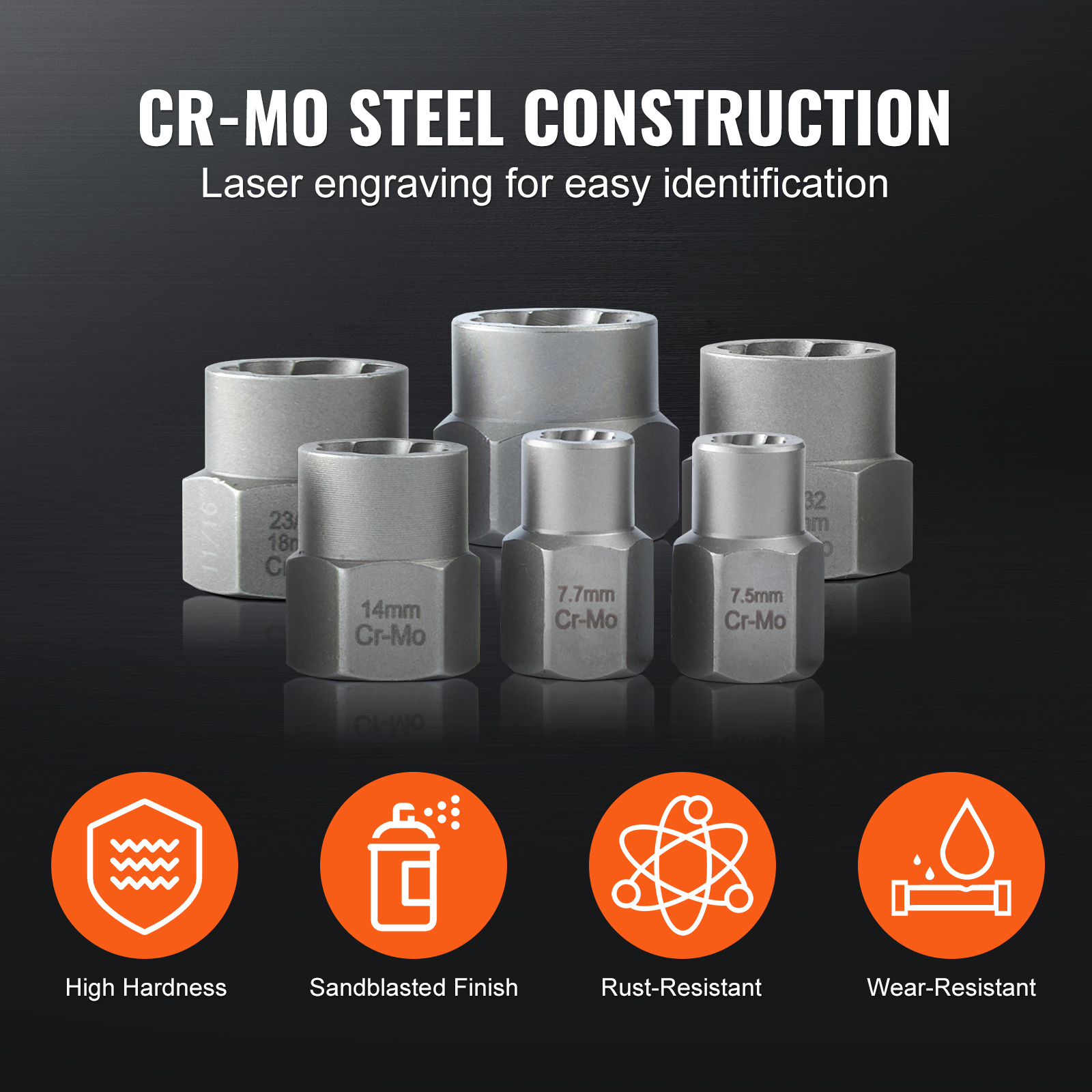 VEVOR Bolt Extractor Set, 29-Piece Bolt And Nut Remover Set, 6mm To 10mm, 13/32″ To 3/4″, CR-MO Steel Extraction Socket Set With Storage Case, For Removing Damaged Rusted Bolts, Nuts And Screws