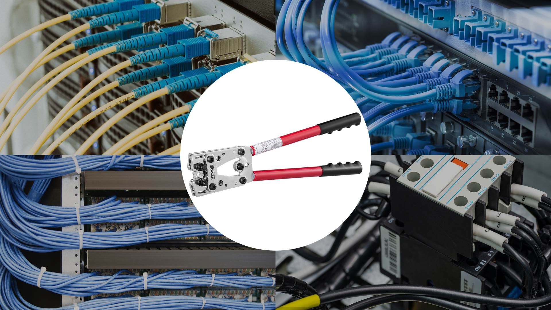 VEVOR Crimping Tool, AWG10-1/0 Copper And Aluminum Terminal Battery Lug Crimper, 6 Wire Sizes Crimping Die, with a Cutting Pliers, Gloves, 95pcs Copper Ring Connectors, and 100pcs Heat Shrink Tubes