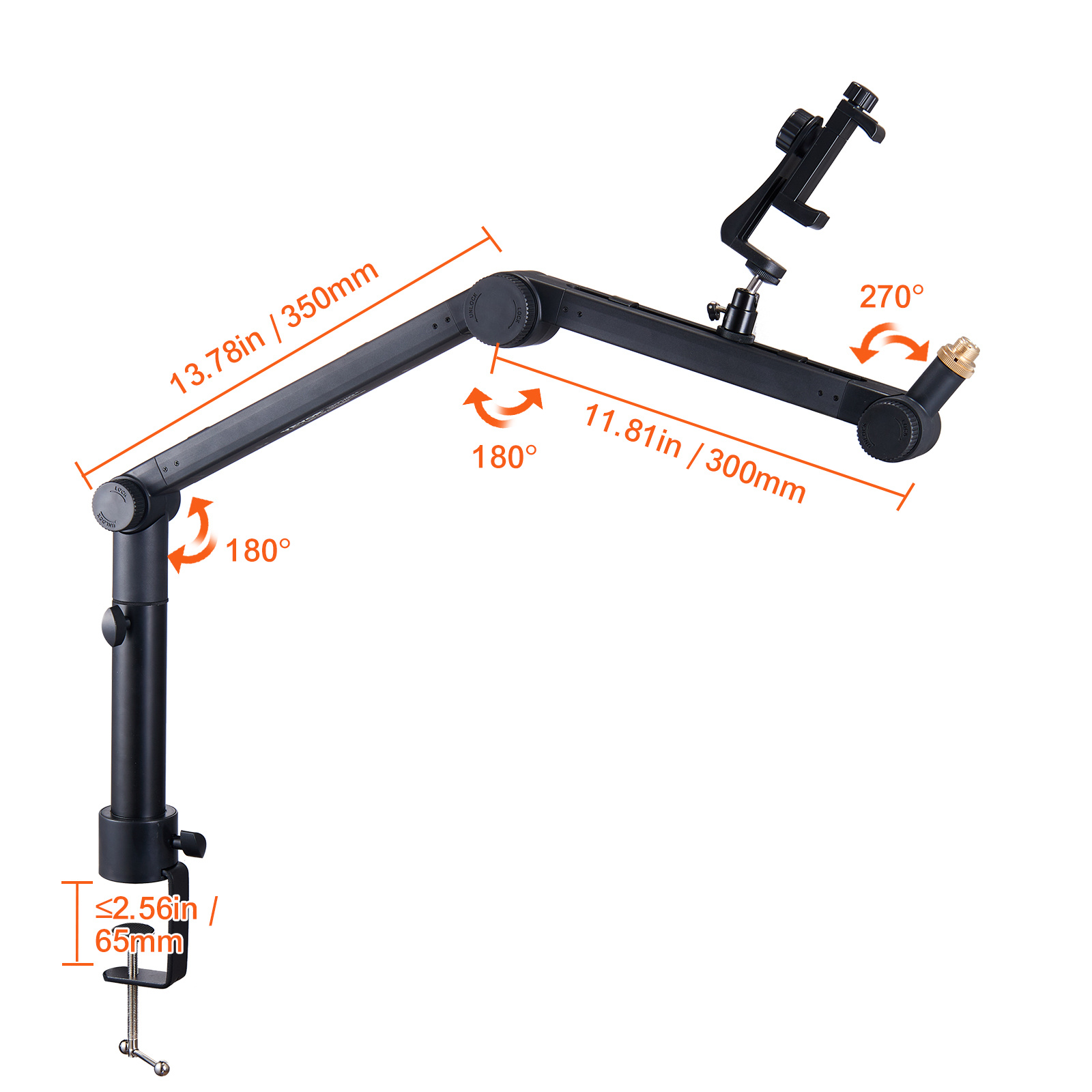 VEVOR Microphone Boom Arm With Desk Mount, Rotatable, Adjustable Mic Stand With Adapter Port Headset Hook, For Blue Hyperx Quadcast Blue Snowball Shure SM7B Audio Technica