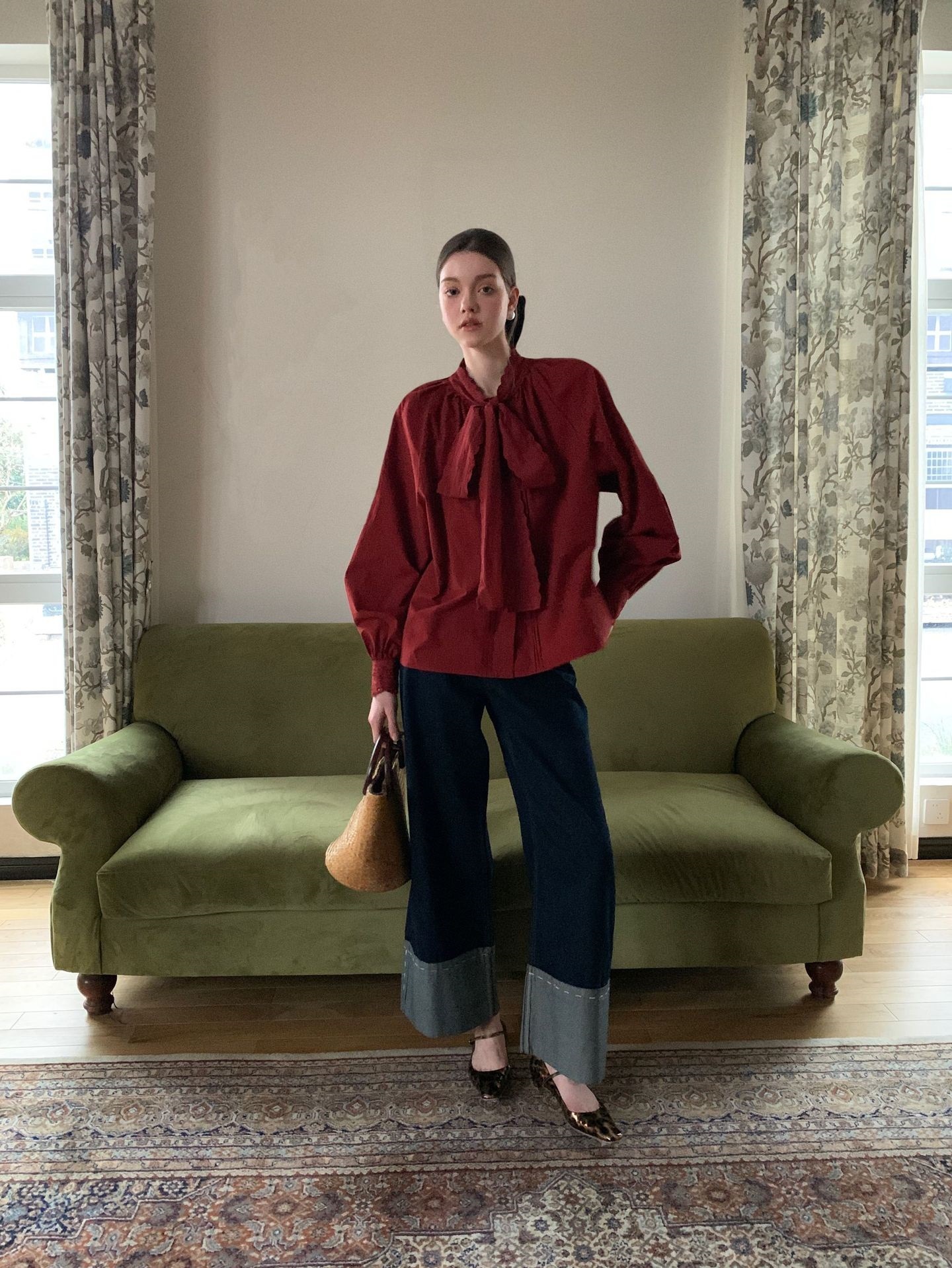 Women’s spring and autumn straight leg trousers with curled design jeans